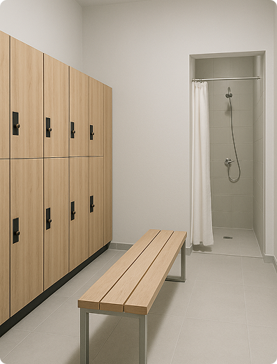 Our gym includes top-quality equipment, locker rooms, showers, and a stretching area. We also offer wellness zones, a juice bar, and relaxing lounge areas for members.
